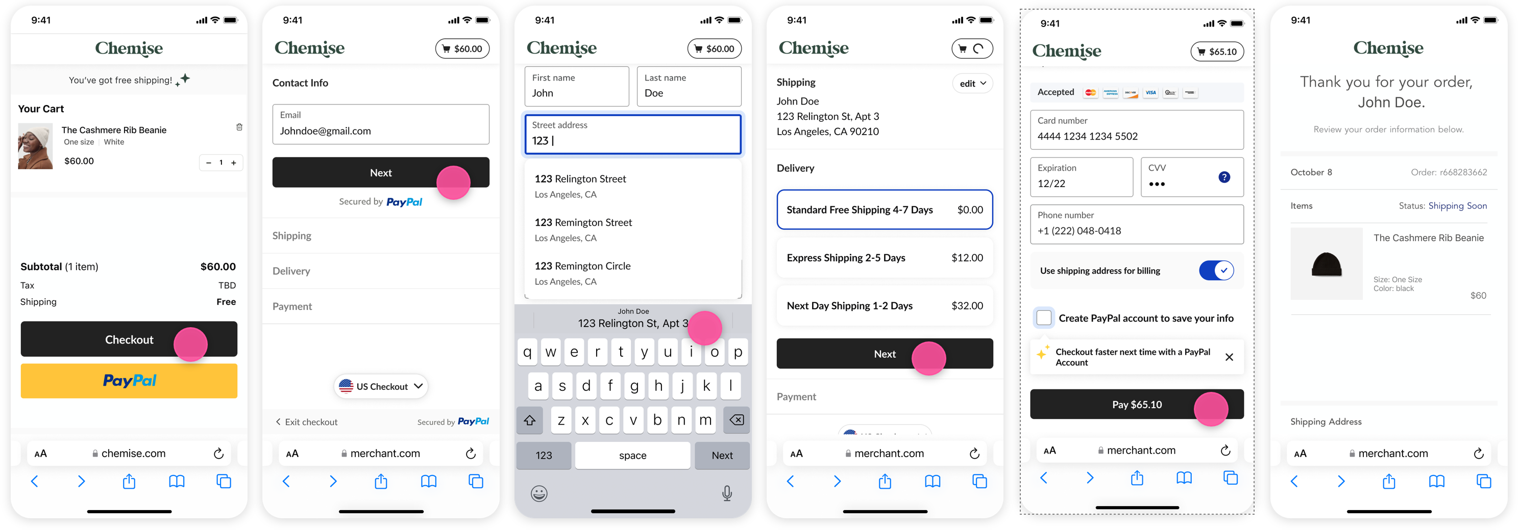 Accelerated checkout provides a card on file experience for the entire PayPal Network. Speed consumers through checkout with a hosted checkout experience.