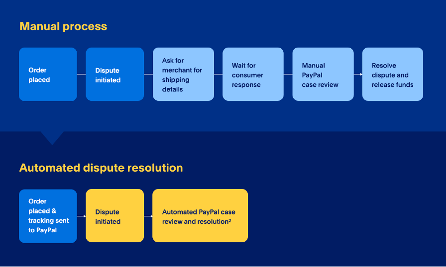 - Only PayPal-branded transactions are eligible for automatic dispute resolution and package tracking updates on the PayPal App