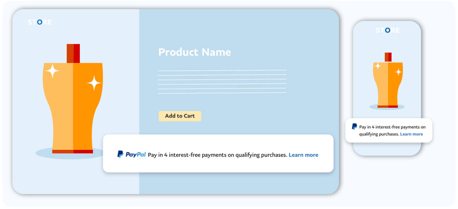 - Dynamic messages: You can show your customers a Pay Later offer that is based on the contents of their shopping cart.