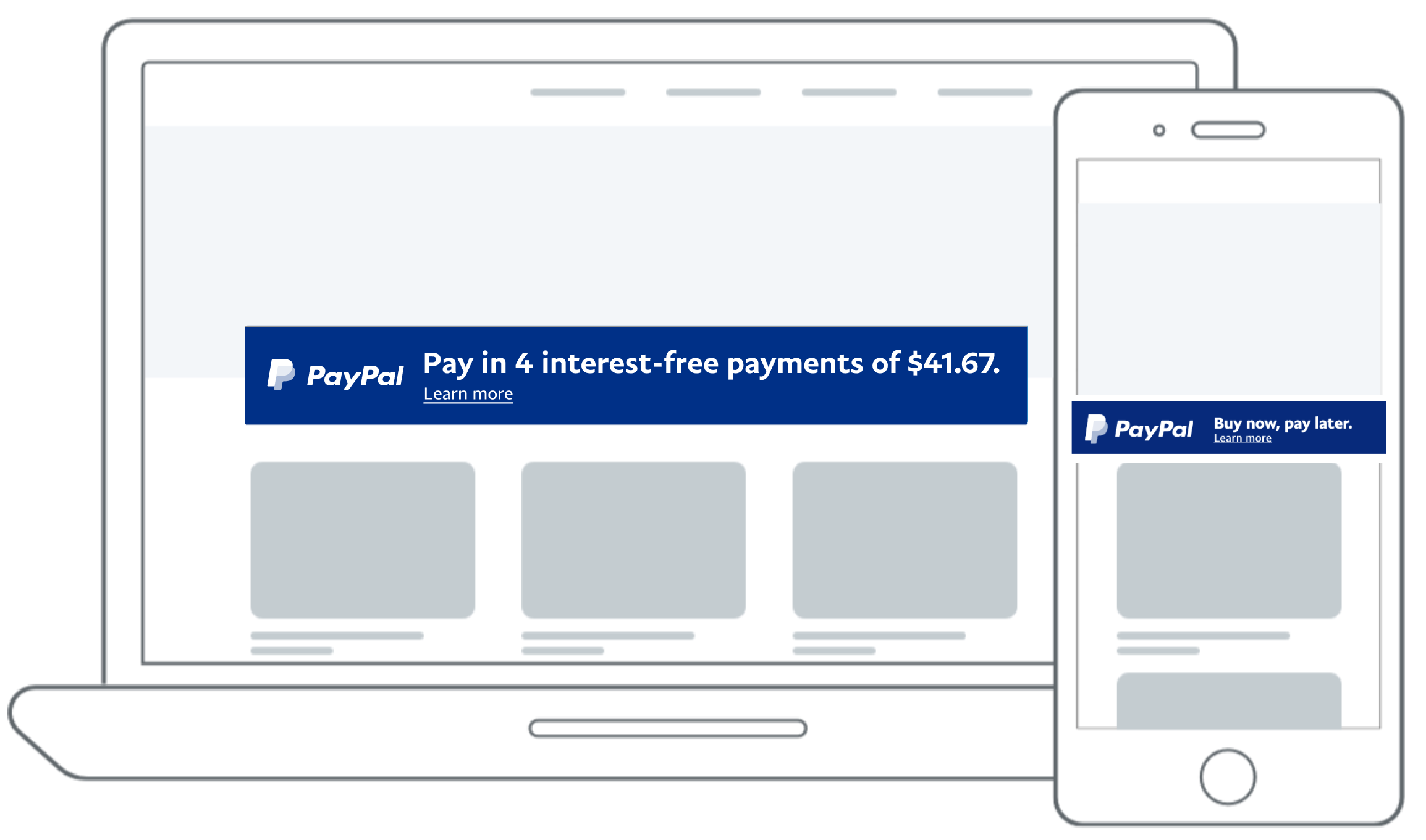 You can maximize the effectiveness of Pay Later messaging by placing messages strategically throughout your site and providing the product price and cart amount to the JavaScript SDK. The most important and effective messages are lightweight, contextual messages (data-pp-layout="text"), placed near your product's price, and configured with the product's price using data-pp-amount.