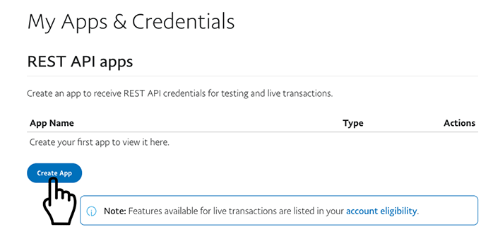 My Apps & Credentials, use the toggle to switch between live and sandbox testing apps.Note: If you are creating a Sandbox app, you will also need to select a test business account that will act as the API caller. For more details, see Get Started.