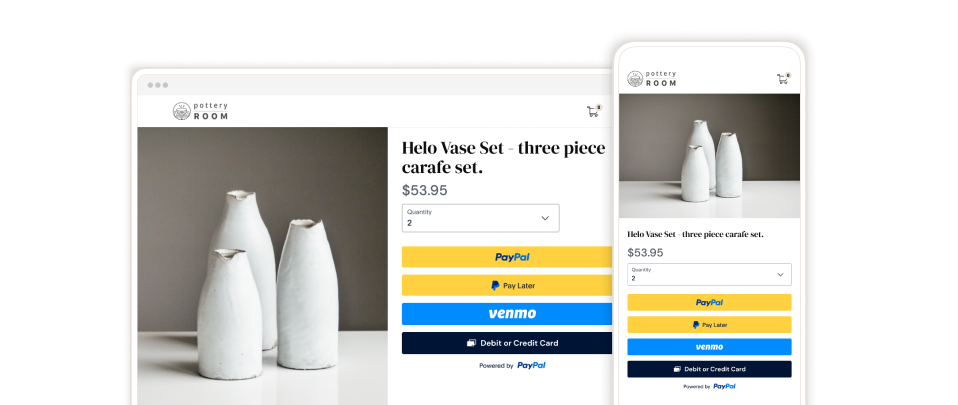 With Payment Links, Buy Buttons, and Shopping Cart Buttons, you can accept PayPal, Pay Later, Venmo, Apple Pay, and major debit and credit cards. Availability may vary by region.