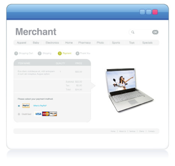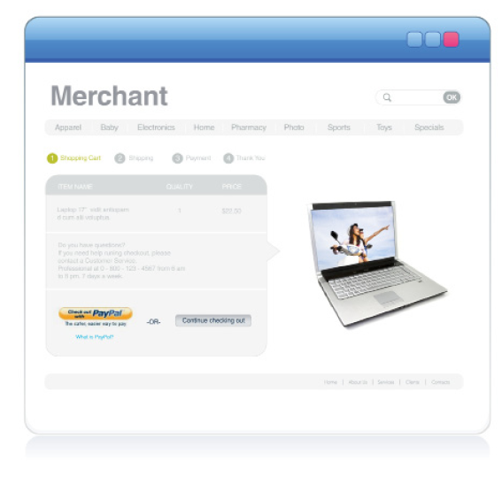 Express Checkout provides a seamless checkout experience via an API-based integration for buyers who want to use their PayPal accounts or Credit Cards (even without logging into a PayPal account). Buyers select their payment methods and shipping information on PayPal, then return to your website to finalize their purchases. Express Checkout allows your buyers to complete transactions in very few steps. It eliminates one of the major causes of checkout abandonment by giving buyers all the transaction details at once, including order details, shipping options and tax totals. Use Express Checkout to complement your existing payment solutions and: